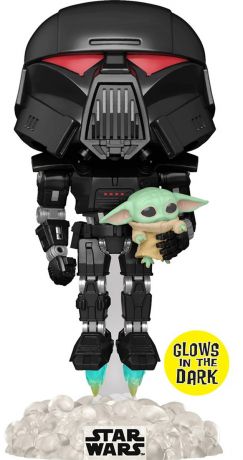 Figurine Funko Pop Star Wars : Le Mandalorien #488 Dark Trooper avec Grogu - Glow in the Dark